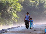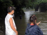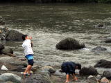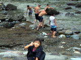 さっきのきれいな川が豪雨でこんなに茶色に![]() ![]() 水の流れも激しくなっている。およぐなよー。見るだけ、浸かるだけだよー![]() |