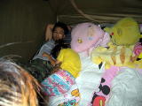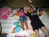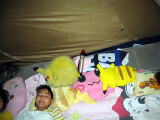 タープにびっちょりの豪雨。八女で体験したせいかちょっと余裕か??光って雷1. 2. 3. 4 数える子供![]() となりのテントの人は車内待機中。光る、いなずま、光る、、こわいー |