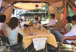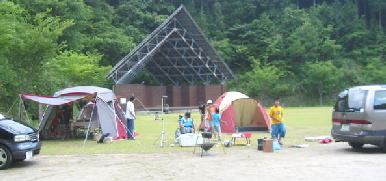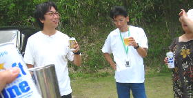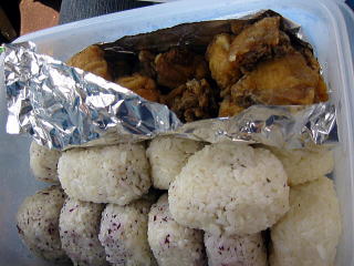 一泊の飲料と昼はおにぎりとからあげ・・設営も終わってないんですが早速いただきまーす
