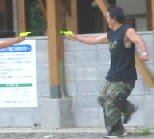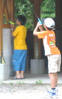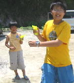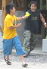 ほーれ!水鉄砲じゃー。ぎゃー!!!カメラにかけられた〜〜〜〜!!こらまて〜〜