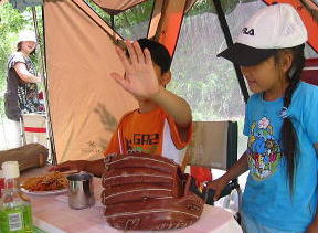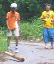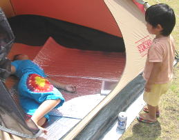「おかーさーん!まきがあった、まき。焚き火できるで〜〜〜」って、すげー薪を持ってきためがドン。
