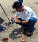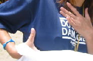 「おばちゃん〜撮らんで〜」お、ちょうど手が顔やん!ナイス