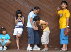 子供は怖くなってトイレの裏に隠れこみ。。笑