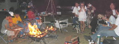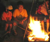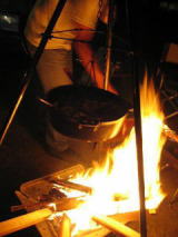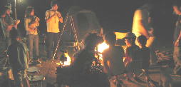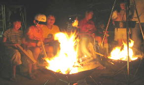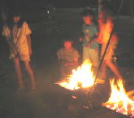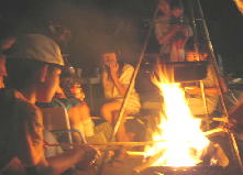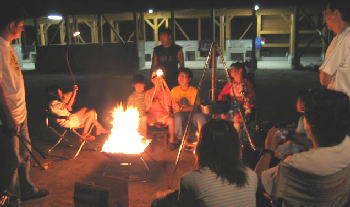 子供も大人も動物も 焚き火を囲み