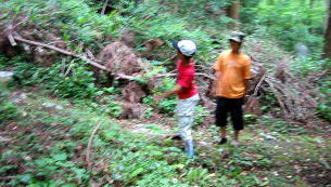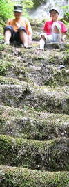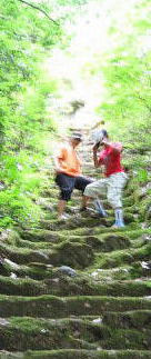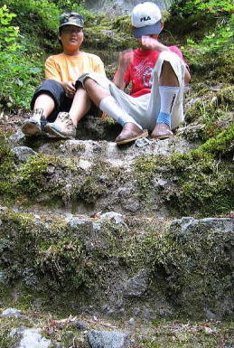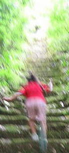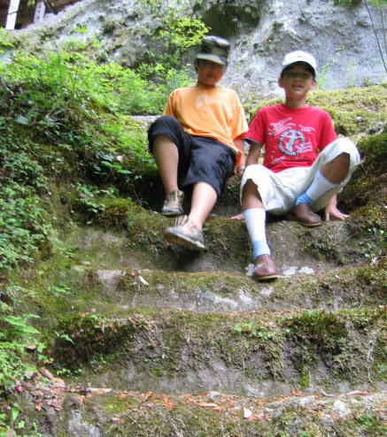 青くてすべりそうやし、所々段がなかったりで、立って降りることができません。