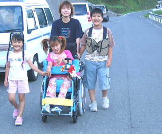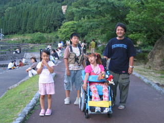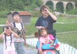 午後6時半そろそろ蛍祭りへ。。途中から歩きます 後ろの橋が「めがね橋」 |