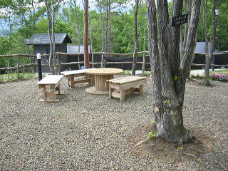 キャンプ場、、じゃなくて、ミニログハウス?っぽい。