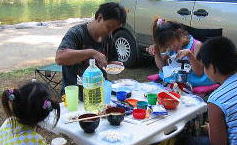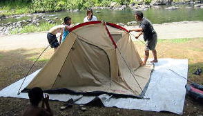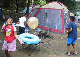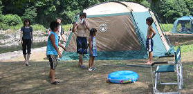 ![]() お父さんの会社の友達家族も来てました〜一緒にテント設営 いいなーコールマン!! (前から一緒にペンション行ったり。。今回は はじめてのテントキャンプに挑戦です我が家の影響????) |