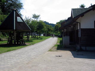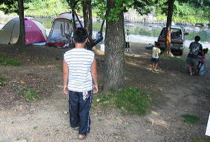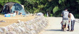 ![]() 左へ行くと川が目の前のテントサイトへ。まっすぐはバンガローツリーハウス 奥の川見える所はテント可 |