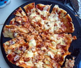![]() ![]() ![]() さーて できてるかな?焦げてないかな?生地がパリッとふわっとうまく焼ければあとはチーズをまいて完成!!今日も大成功! ピザは12インチじゃたりないんだよ。二枚は欲しい |