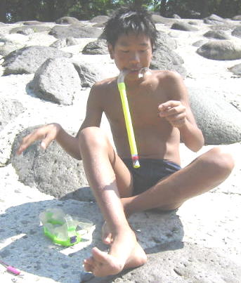 ![]() ![]() 皇帝と和くんは、こっちのほうで泳いでいる(ターザンロープがあるんだ)で、手前の青いパンツの子はあの橋から飛び降りていて、左肩からまっかっかだったよ。あぶね〜〜〜んだよ。確かあの橋の上に「とびこむな」って書いてたよ |