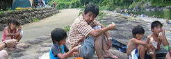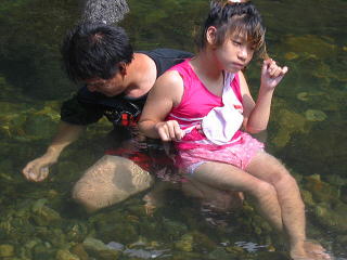 ![]() ![]() ![]() 足のまわりにめだかがいっぱいあつまってくる。。お父さん、、?手でにぎりつぶすなよ?? |