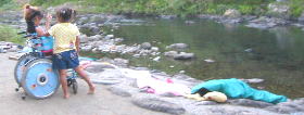 ![]() 今日から母は泳げんから、お父さんがしぶしぶ川へ。。 お父さんは、泳ぎが苦手です。。すべるなよー |