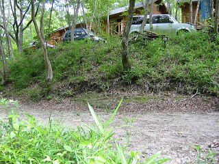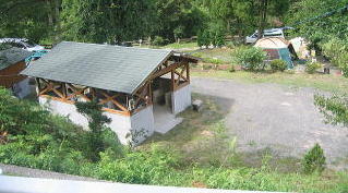 上の道路から見たところ手前が炊事場その左がトイレ(きれいでした) |