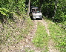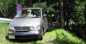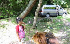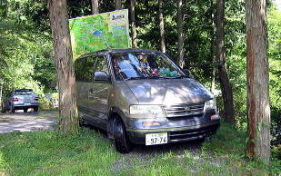 フリーキャンプサイト入り口 両端 木が邪魔![]() 別に駐車場があるがやっぱり車横付けしたいし〜〜 |