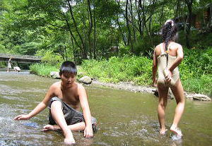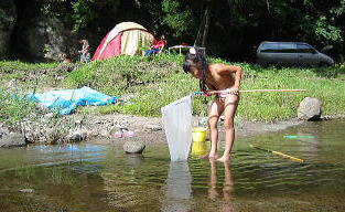 | キャンプ場まわり一枚岩で深さがくるぶしくらいの川がずーっと続いている おたまじゃくし、小魚などいっぱいいて子供たちは一日時間が楽しめる ■入場大人300円子供150円 ■フリーテント3000円■オート5500円 ■駐車料は温泉客もいるため狭くて少ない。フリーテントサイトに入る 川近くの入り口は木が両脇二本立っていて我が家の車もぎりぎりだった ■ログハウス情報と地図はこちら 感想:::ペットも喜ぶ川遊び、デイキャンプ向き 価格が高い。区画整理って番号札だけだし草ぼーぼー水道蛇口もこわれてる トイレも遠いし照明もなし(フリーサイト) |