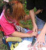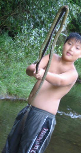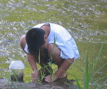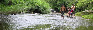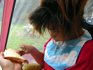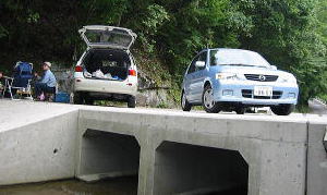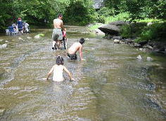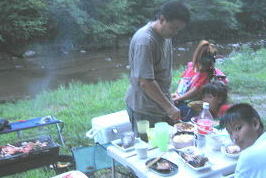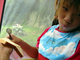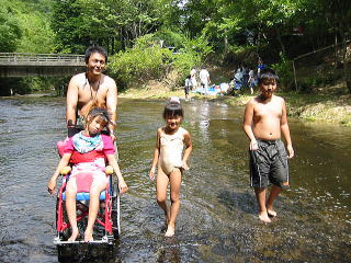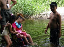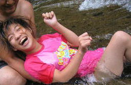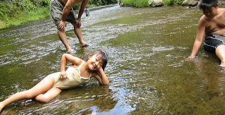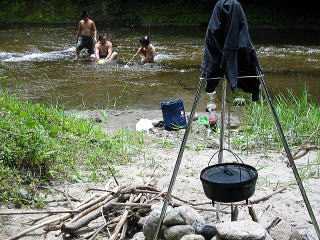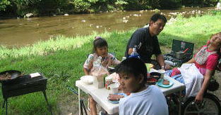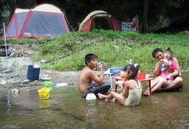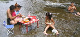 ![]() お昼は川の中でいただきます |