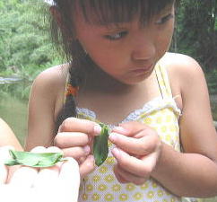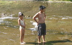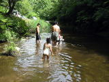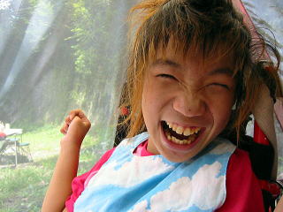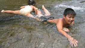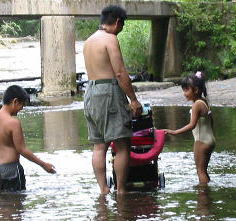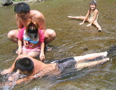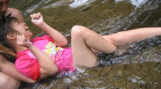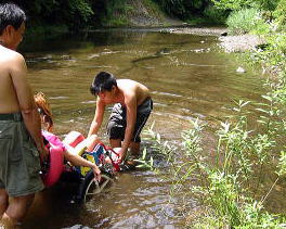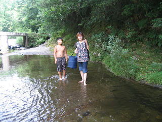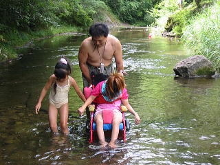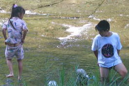 バンガローの前の川は深くなってるぞ行けるのかあ?![]() 「いけよーいけよー」と美琴。。もう少しがんばっていってみようか。 |