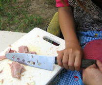 朝はビッグな骨付きハムにしよう![]() 美琴の技あり切り方(笑)普通にもてないし 外側に力が入るため こういう持ち方をすればうまく切る事ができました (母は包丁がぐらつかないように支えているだけであとは、美琴の気持ちと力で切ってくれました。) ![]() お父さんが焼いています |