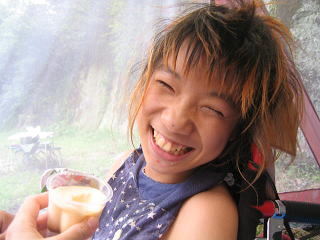 ![]() めが丼の友達も同じキャンプ場にいた。父さん同士中学のときの「まぶだち」だったそうだ。あちらは、金持ち バンガローコース |