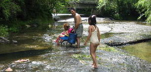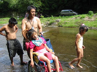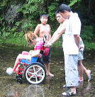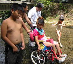 ![]() 場所によって岩ががくっとなって深くなってる場所があるんだよ。車イスどうなる?美琴が。。(汗)「はいれーはいれー」と美琴 |