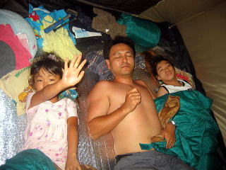 ![]() ![]() 母と美琴はタープの中で 呑んで呑んでなんだか眠たくなって40分間 昼ね。。美琴より早く寝入ってしまった母 |