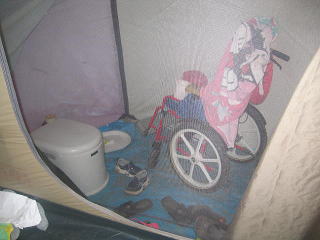 テントの入り口に空間があったので車イスもトイレも置けてよかったです 午後10時おやすみー |