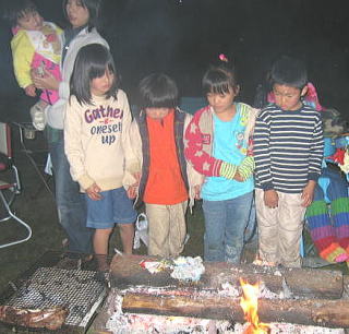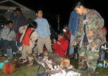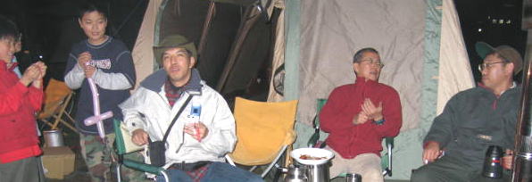 よろずやさんの親父キャンパーズ4人組とりょうくんひなこちゃんキムチくん、、kazuさんと奥さん、ストーブ屋さん