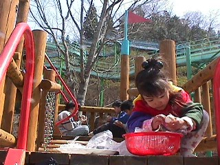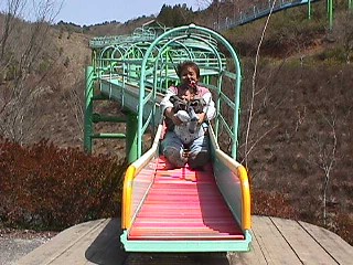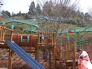 | みこを抱えての山を登るのは 私にはできなかった。。 登るのが やっと。 次女は泣きながら頂上まで 登った。 202メートルの長いすべりだいは、 のぼるだけで疲れてしまう。。 |