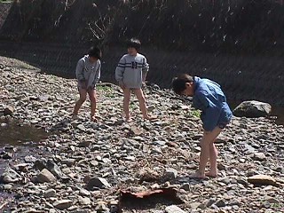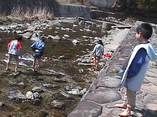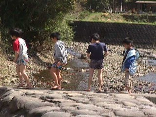 | 今度は川へ。 寒いっていうのに すぐに脱ぐ子供たち。。。 |