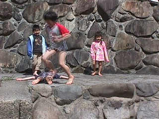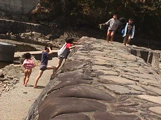 | 今度は川で石投げ どこまで飛ぶかな〜〜 |