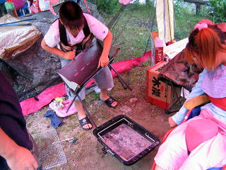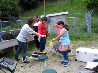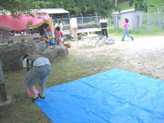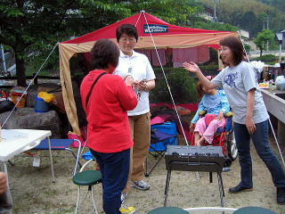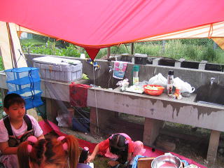 ちょうど火の準備をしようかなって思ったときに続々とkeiママさん、なっちゃんママ、ダイエーちゃんが集まってきました みんなお初の人???なんだか久しぶりに会った人のような???スムーズな出会い あらま もう席取りね。(爆) ちょうどいい具合にデイキャンプの人も帰って行きました早いとこテント建てておかなくっちゃ 貸切広々テントサイトじゃん! |