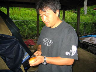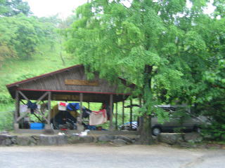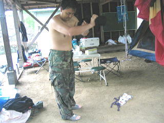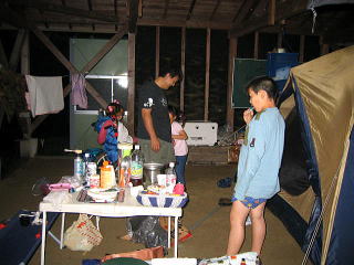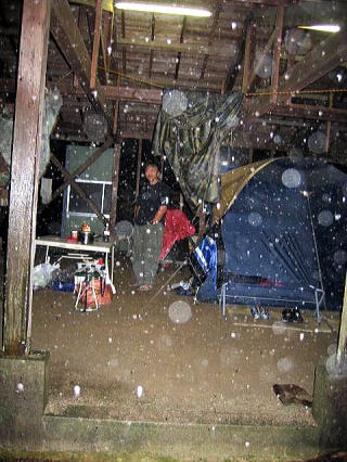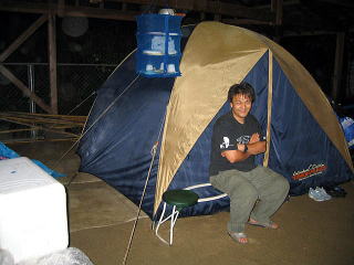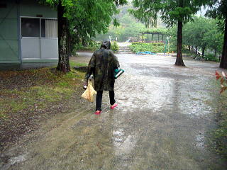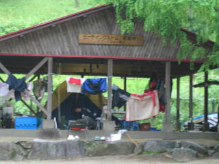 ![]() ![]() 川側からみた臨時サイト。。よかったよ、移動できて。。電気もあるし一段上がってるし、、、もう普通のテントサイト地面は川流れ状態だよ |