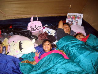![]() ![]() テントの中で遊ぶ子供たち。。いつも仲悪いがこういうときはいいんだよなぁ。不思議 ![]() ![]() ![]() しょーちゃんから奪った?クーラーボックスが光っている! |