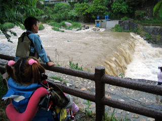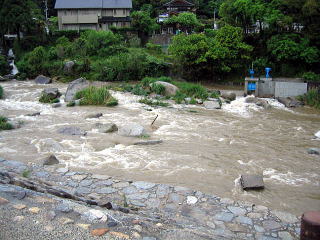 ![]() ![]() 昨日の大雨で川も泥色 |