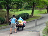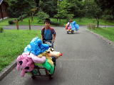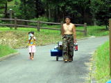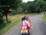 さて〜荷物運びがんばれよー!!押し車貸してくれます。坂道だぞー![]() |