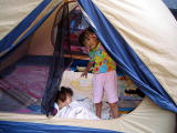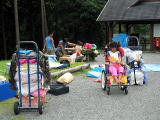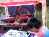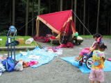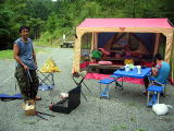 ![]() ![]() 荷物運び完了 タープ張り頑張れ |