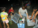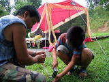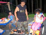 早速火おこし。腹減った〜、今日は「ダイエーちゃん親子」が肉持ってきてくれるんだ |