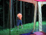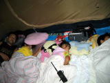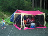 テントの中 一日大変充実しとりました。本日うんこもらしませんように 「集合」、、なんて肝試しにきて人のテントの前で写真撮りませんように、、、、、家族爆睡 |