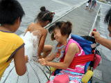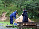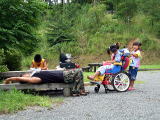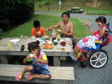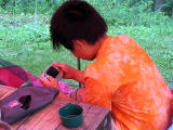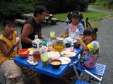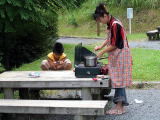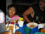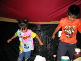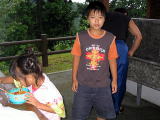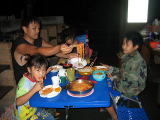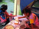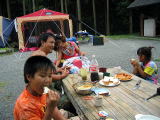 踊る兄妹![]() 夜は雨のため炊事場でスパゲティ |