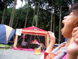 | 昨日のうんこもらし事件と、 夜中に大学生がきもだめしで人のテントの前で「集合」とかいいながら記念写真して通過。。。こっちのほうが こえーって。 しかも夜中に打ち上げ花火すんなっちゆうの かなりモラル違反!! 寝不足の朝がきた |