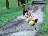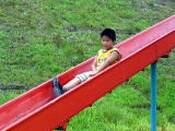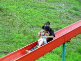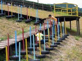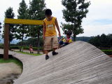 ![]() 長いローラー滑り台。お父さん美琴と一回完走。上がって休憩中 |