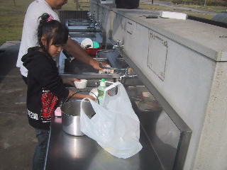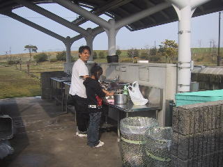 使いやすい炊事棟 分別ごみ箱あり