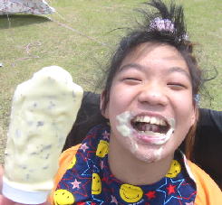 仕方ねー。特別にお父さんにも買っちゃたわ〜 めったに口に入らぬ「自分だけのアイス」にご満悦のご様子〜〜
