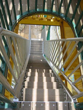 この大人がぎりぎり?一人幅の狭くて急な階段をクリアしないと美琴は すべれないぞ〜〜