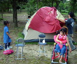 ![]() ![]() ![]() 我が家もテント建てよう〜〜〜と、テントは旦那にまかせて〜〜、あ〜〜ビールのみて〜〜よー |