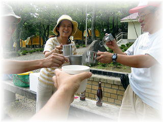![]() じゃービールばんざーい、、違った、「乾杯〜!!」 15:22はやくも乾杯!ビールや!ビール。。 |