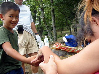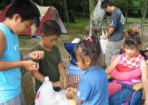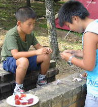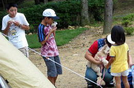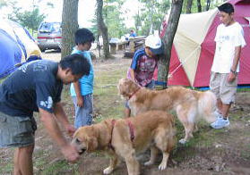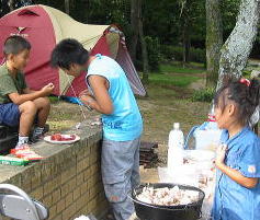 ![]() nagomi家のテント設営も無事終わり、nagomiちゃんちの白Tシャツしょうご君中一とよし君4年もよろしく〜〜♪ |