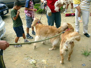 ![]() 16:10 nagomi家とジョン君のパパ到着〜♪ワンちゃんも車酔いせんかったかな?こりゃ にぎやかになりそう♪ |