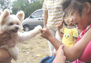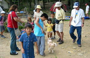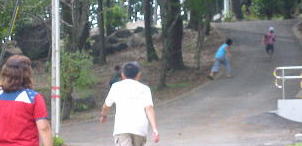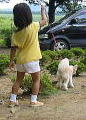 散歩ひもが離れた?脱走〜モモ!!すぐに追いかかける子供。大人は声で追いかける 〜〜数分後無事確保♪ |